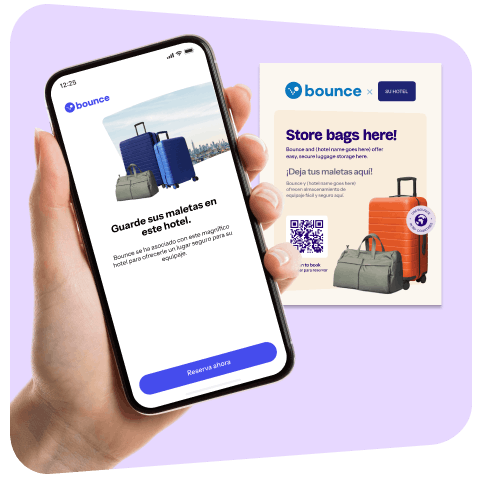 Proporcionamos señalización co-marcada sin costo para promover el servicio de almacenamiento de equipaje de manera efectiva. Desde el primer día, puedes colocar la señalización de Bounce en la recepción, en las habitaciones y en tu sitio web para informar a los huéspedes sobre esta opción. Además, puedes enviar correos electrónicos previos a la llegada a los huéspedes, permitiéndoles reservar el servicio con antelación. Una comunicación clara no solo aumenta las conversiones y los ingresos, sino que también reduce la confusión de los huéspedes, asegurando una experiencia más fluida y menos quejas.